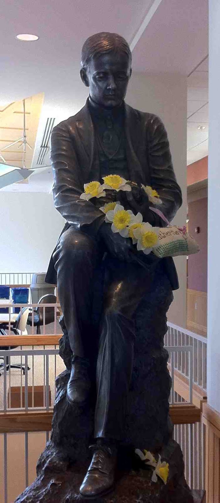 From the metal description, it sounds like Charles Martin Hall, joint inventor of the Hall-Heroult electrolytic process for refining Aluminium. If so, the statue is at Oberlin College in Ohio.